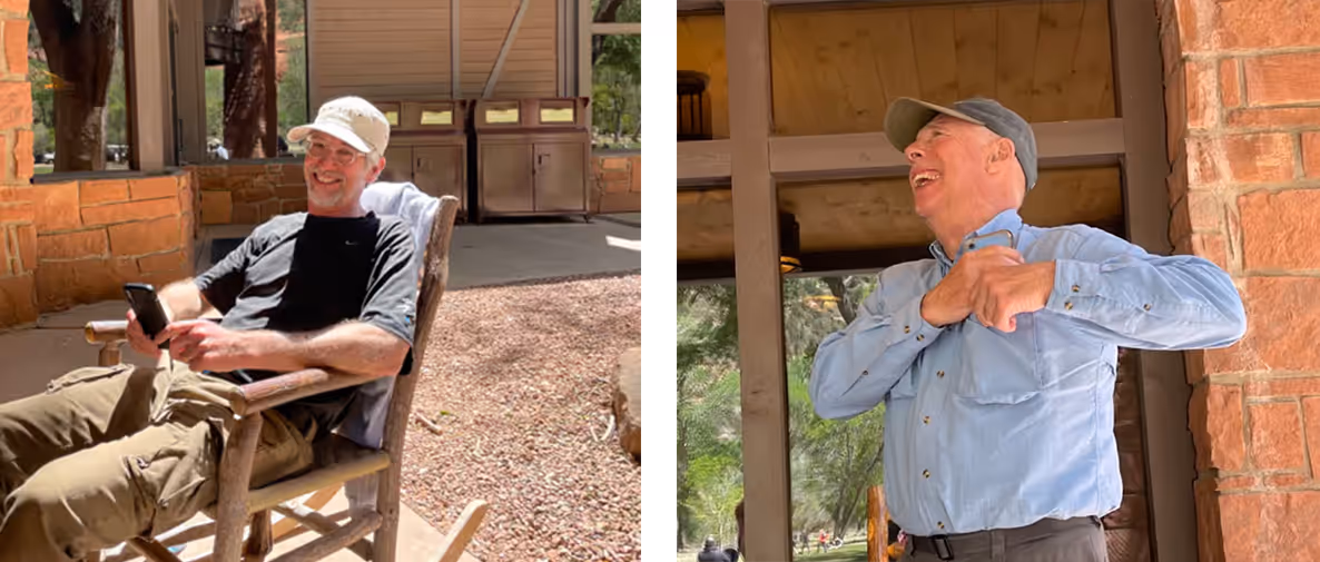 One more trip to Zion for our last hike together to see The Emerald Pools and the Virgin River (3.5 miles). We ate our lunch on the patio in rocking chairs and headed home to pack for our early departure on Day 7! Drove down to Las Vegas for our flights and our good byes. Until next time!! What a great group you all were. We thank you!!